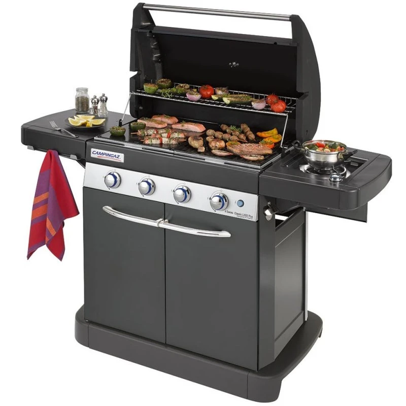 Barbecue à gaz avec surface de cuisson mi-grille mi-plancha de 78 x 45 cm, le 4 Series Classic LXSD Plus de CAMPINGAZ est parfait au camping ou au jardin !
