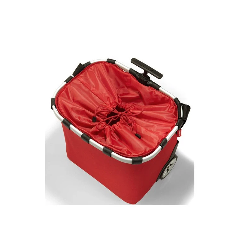 Décliné en rouge ou en noir, selon les goûts, ce cabas possède une toile sur le dessus avec une fermeture réglable vous permettant de protéger vos affaires même par temps de pluie. Malin, ce chariot peut également s’accrocher au bout de votre chariot de courses pour faciliter son remplissage.
